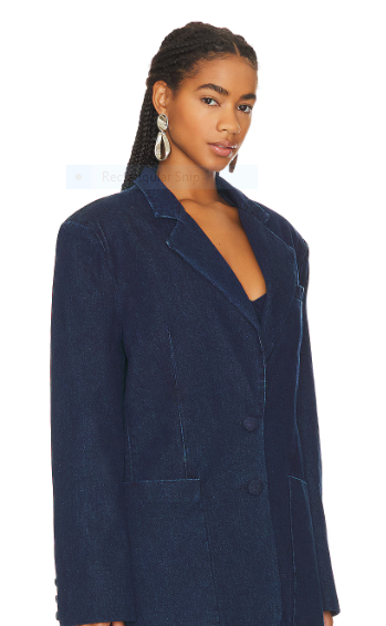 - Midweight denim fabric with back vent
