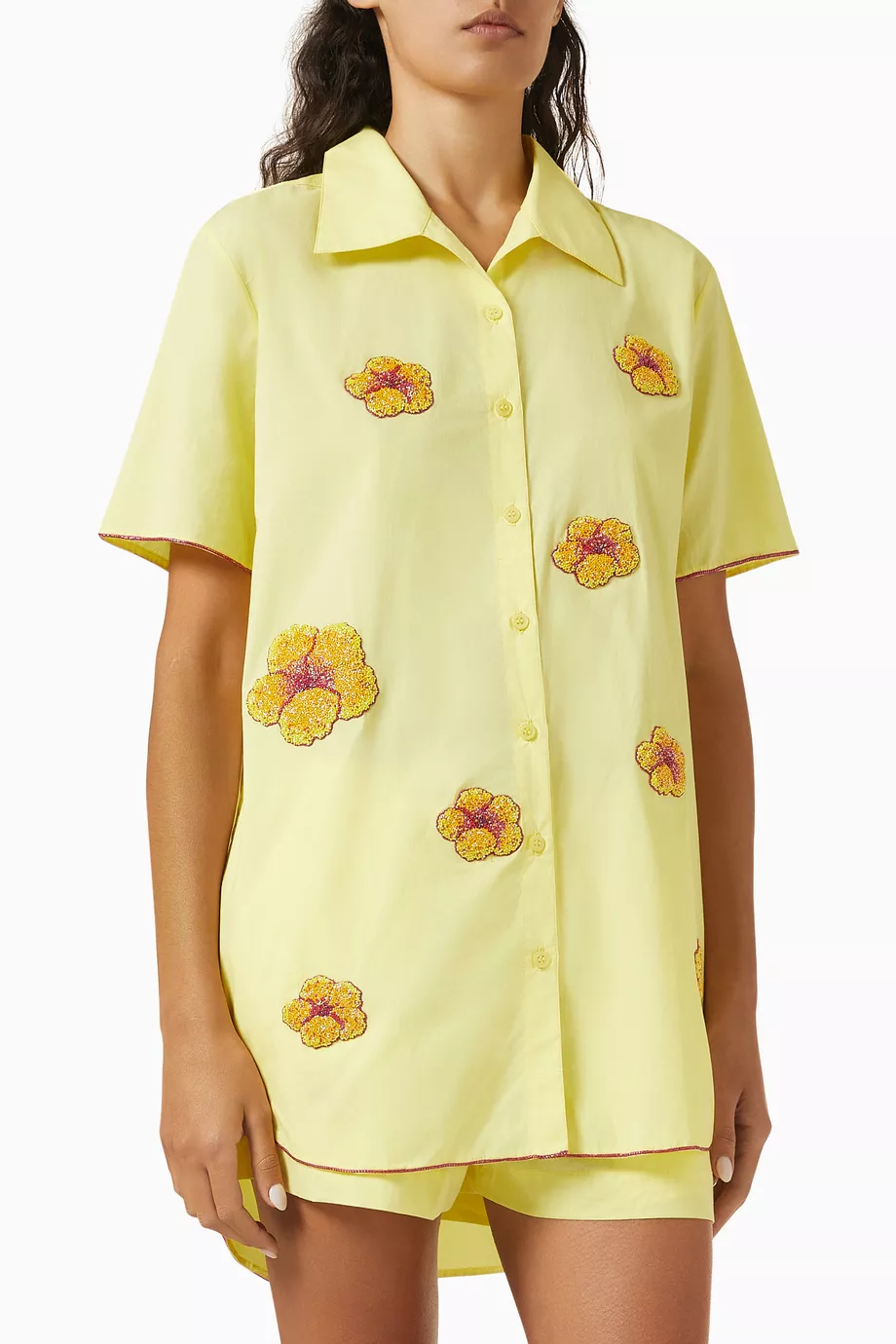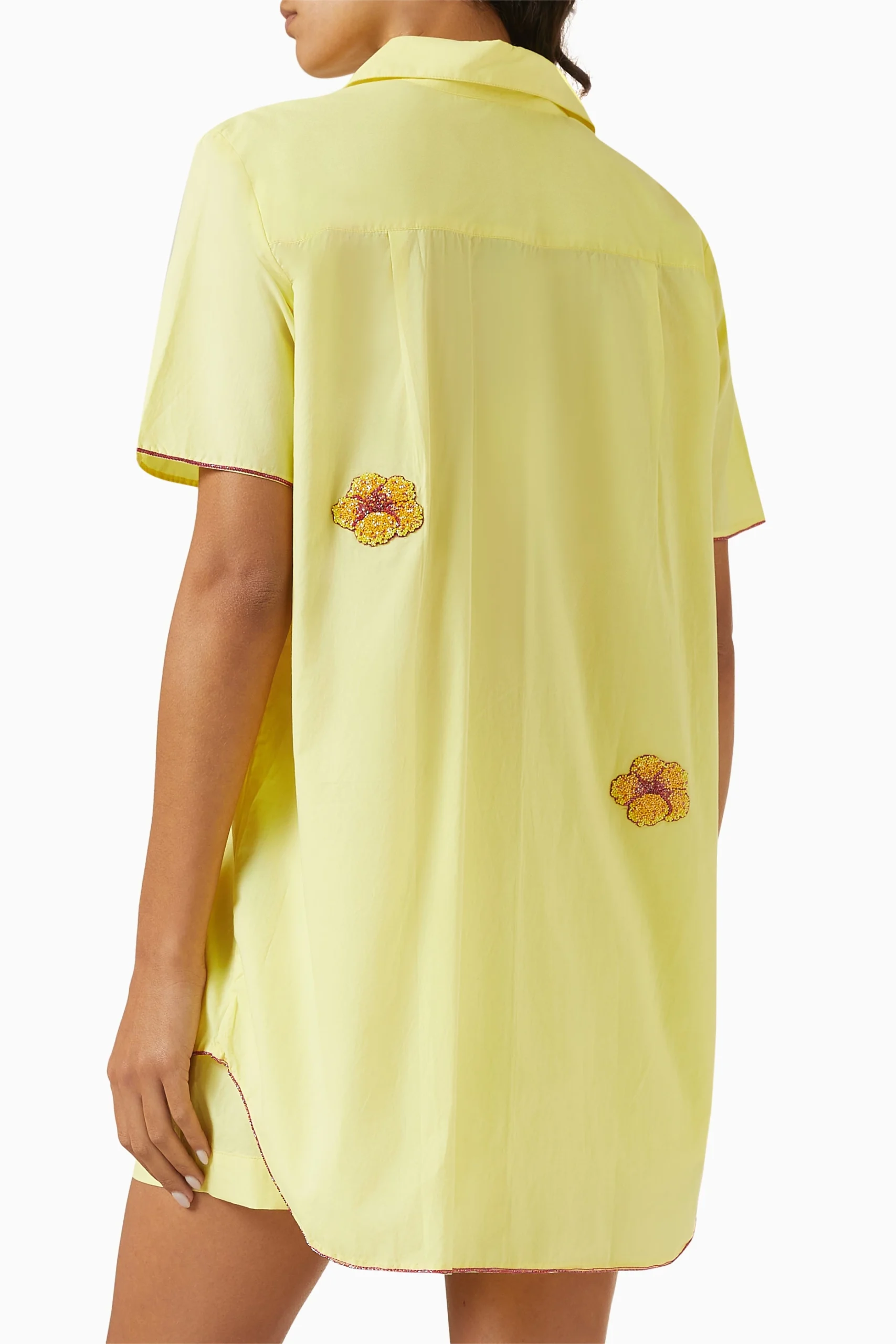 • Hand-embroidered flowers