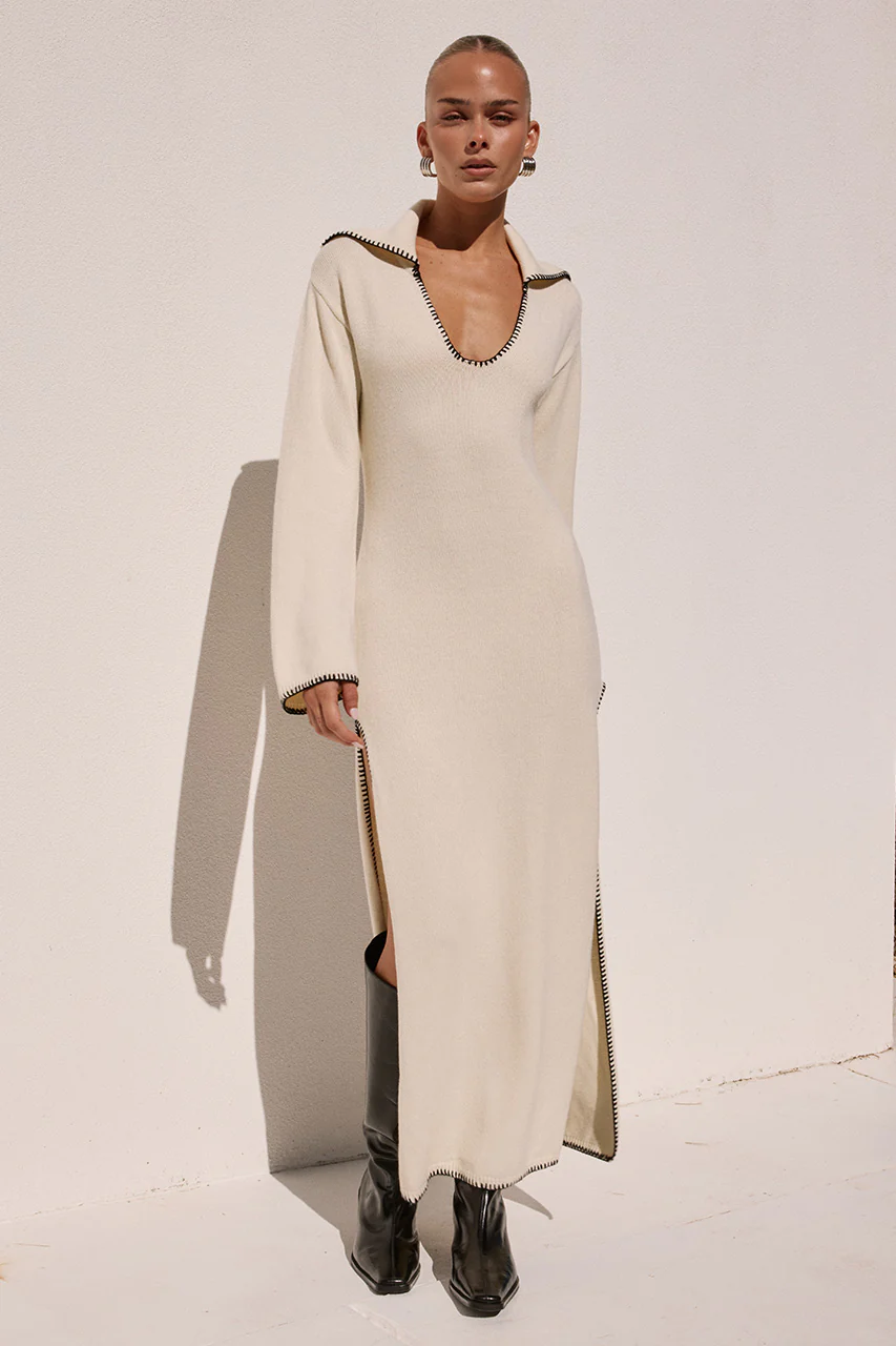 Relaxed effortless style, our Ivana Maxi Dress features a side splits and contrast stitch detailing, perfect for a weekend with the girls.