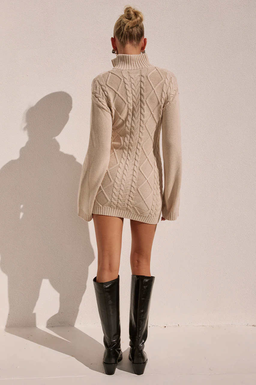 Crafted from a luxe cable knit with a dual ended zipper, our Katara Mini Dress can be styled up or down for a chic transeasonal look.