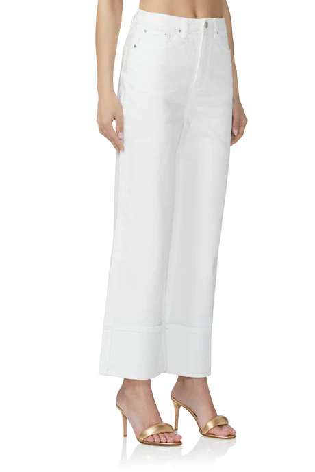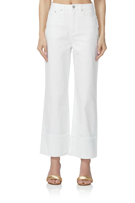 Meet the high-rise, cuffed jean, Kendall. This wide-cuff hemline elevates your standard off-duty look. She is available in White.