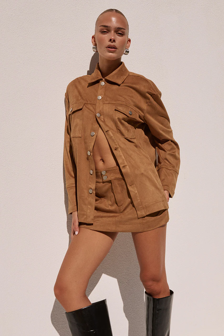 A classic silhouette in a luxe suede fabric, our Monah Mini Skirt is effortlessly cool, pair with our Monah Jacket for the complete look.